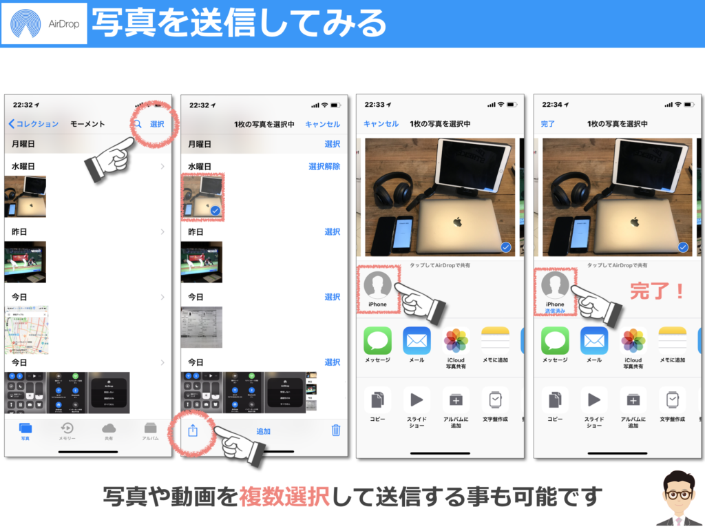 iPhoneで撮影した写真や動画を、一緒にいる友達に送りたい時ってありますよね?