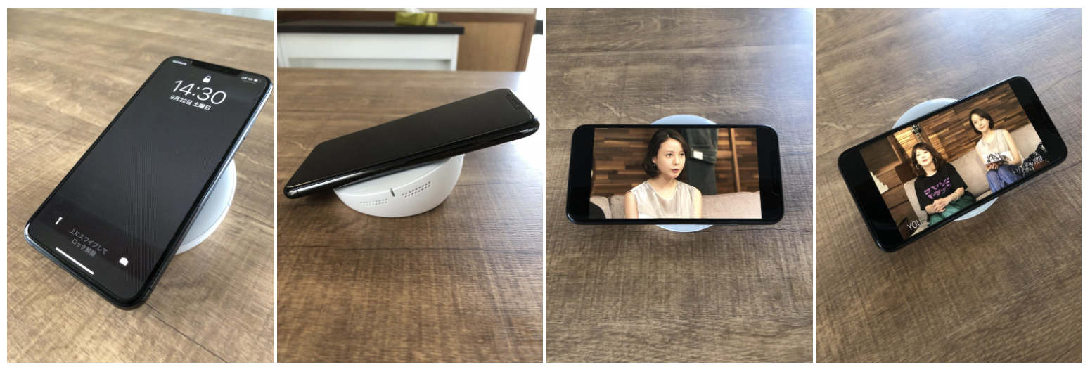 やはりフラットで乗せるよりも、角度をつける事で画面が見やすいので、充電しながら操作も楽々。