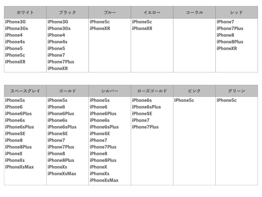 基本カラーの「ホワイト」「ブラック」は発売された当初が多い事がわかる。iPhone5sからカラーチェンジが行われ「スペースグレイ」「ゴールド」「シルバー」に変わり、ブラックはiPhone7で「ブラック」と「ジェットブラック」で復活し「ジェットブラック」の人気が高まり在庫入荷までに2ヶ月待ちなんて事も行なっていた。