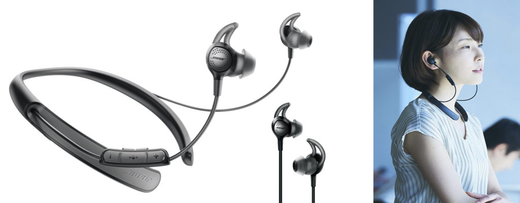 人間工学に基づいた設計により、首にフィットし安定したつけ心地を実現したBOSEのノイズキャンセリング機能付きイヤホン。そのノイズキャンセリングもレベルを自由に調整出来るので、どの音量でもバランスのとれたオーディオ性能を発揮する事が出来る。BOSEのノイズキャンセリングは非常に優秀で、騒音なども一気に打ち消す程の性能です!外部の音をシャットダウンし音楽に集中出来る点がGood!