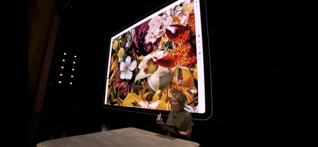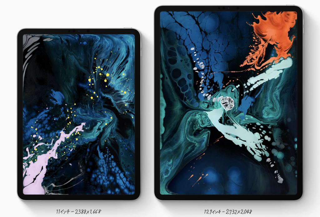 12.9インチと11インチの2モデルだが、ホームボタンが無くなった事で全てがスクリーンへ!これにより、ボディーサイズも25%小さくなりコンパクトで大画面になったのである。