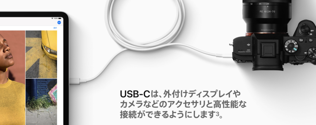 コンクターが変更されるのは、大きな変更点である。AppleはMacに関して、USB-Cへの変更をすすめており、これがiPadにも搭載される事になった。より高性能なカメラに接続したり、iPadProからiPhoneを充電したりも出来るのである。