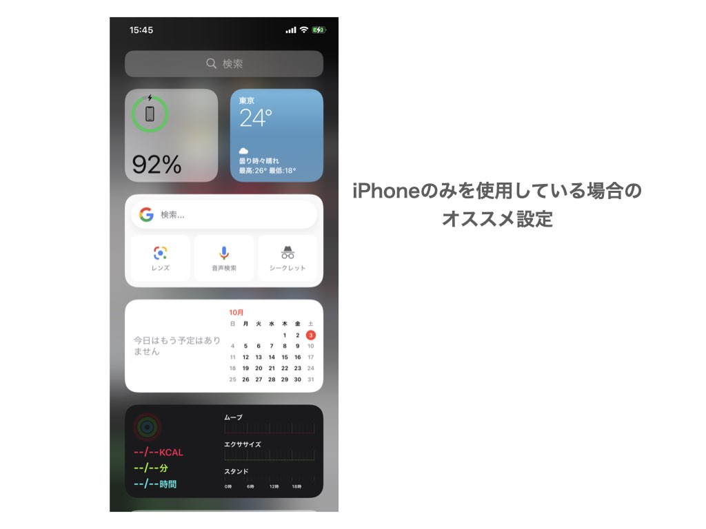 中サイズのウィジェットがオススメです。理由としてはAppleWatchやAirPodsの残量を一瞬で確認する事が可能だからです。中サイズであればサイズ感も画面いっぱいに表示されるのでとても見やすいです。