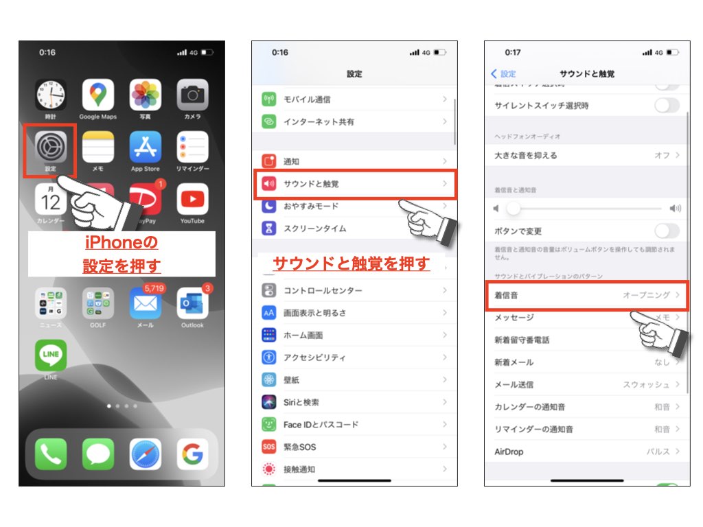 手順⑦iPhone本体の設定から着信音が入っているか確認
