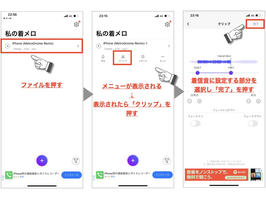 手順⑤着メロメーカーアプリで曲の長さを調整