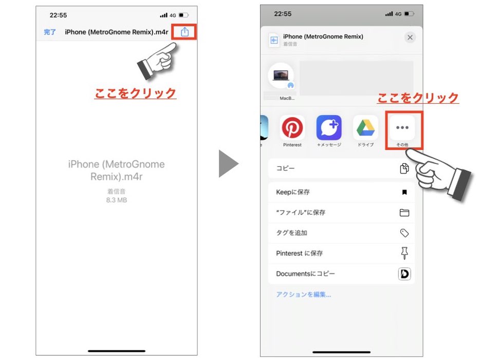 ファイルをなんとか頑張ってiPhoneへ送信お願いします。
