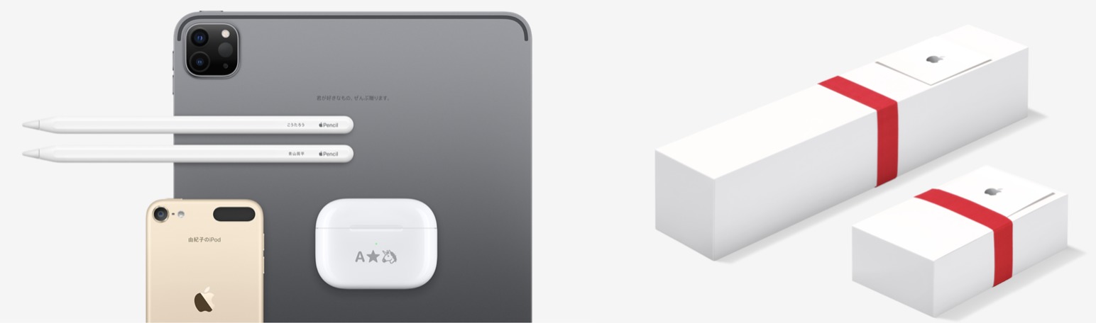 Apple製品をプレゼントする際に、刻印出来るサービスがあります。もちろん無料です。