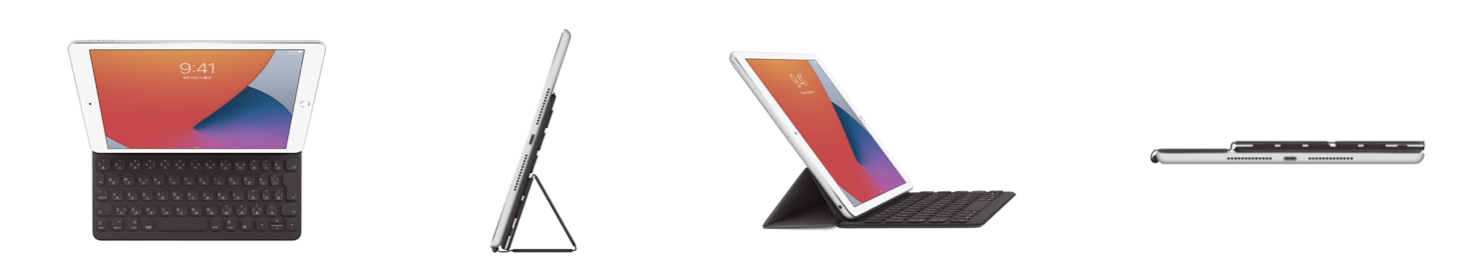 2つの角度から選んで、スクリーンを見やすいポジションに調整することもできます。充電やペアリングは不要。キーボードを取りつけるだけで、すぐに文字入力を始められます。(AppleHPから引用)