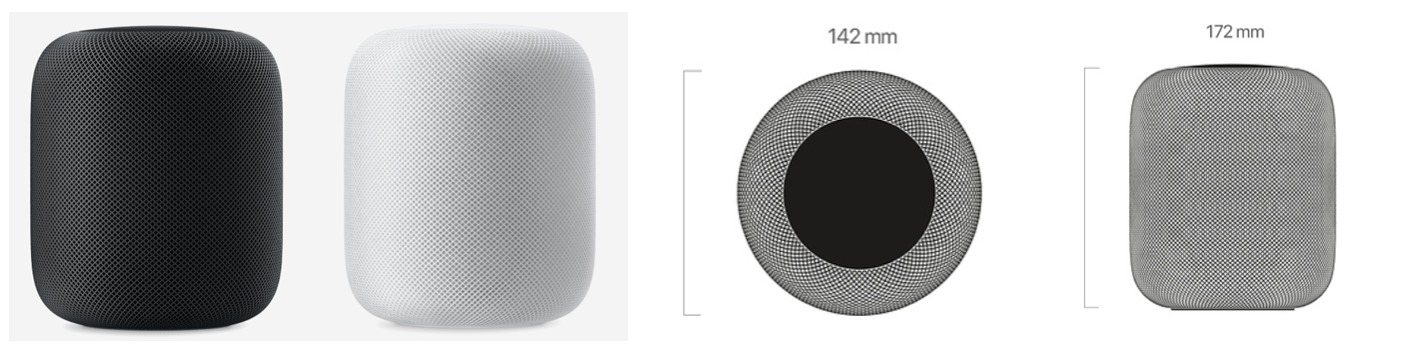 デザイン性にも優れたHomePodは高さ約18センチ、幅14センチのスピーカーです。ウーファー搭載でレンジの低い低重音が魅力。