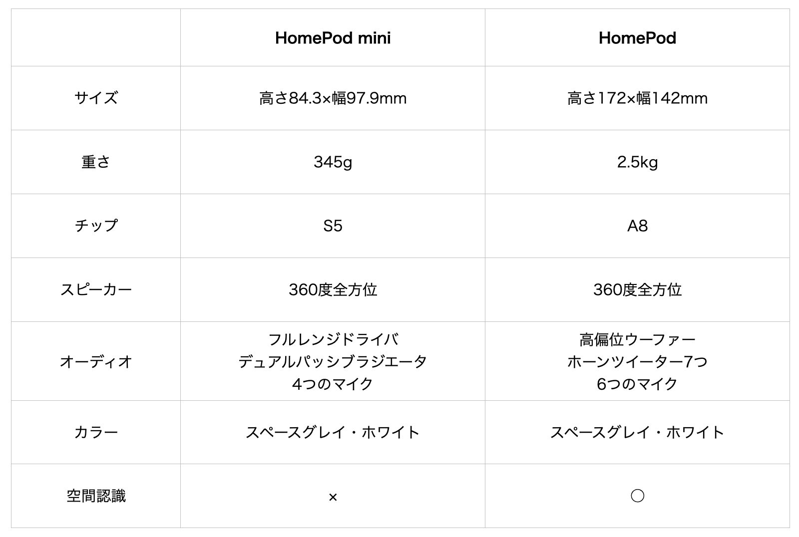 HomePodスペック比較