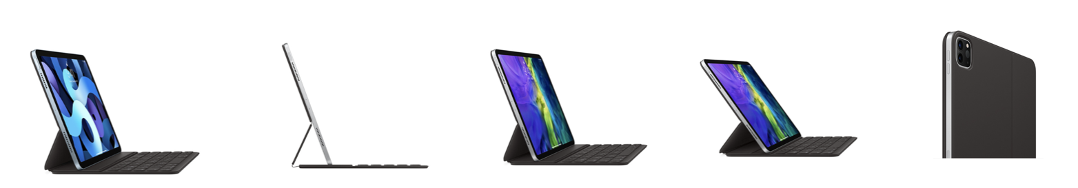iPad ProとiPad Air(第4世代)用のSmart Keyboard Folioは、使う時にフルサイズのキーボードになり、使わない時はデバイスの前面と背面を美しく守ります。